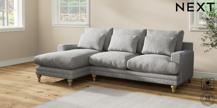 6.12.1 Buy Hutton Deep Relaxed Sit Medium Sofa Chaise - Left Hand Chunky Boucle Easy Clean Light Grey Country Turned - Light from the Next UK online shop Click here to use our accessible website