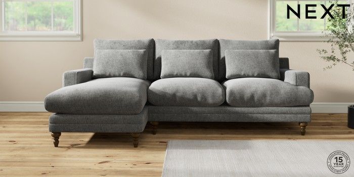 7.0.3 Buy Hutton Deep Relaxed Sit Medium Sofa Chaise - Left Hand Chunky Chenille Dark Grey Country Turned - Mid from the Next UK online shop Click here to use our accessible website