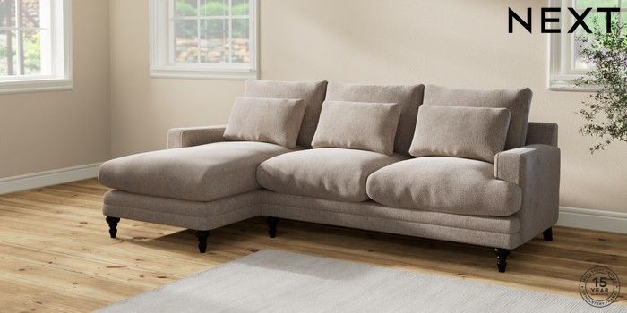 6.12.1 Buy Hutton Deep Relaxed Sit Medium Sofa Chaise - Left Hand Chunky Chenille Light Dove Country Turned - Dark from the Next UK online shop Click here to use our accessible website