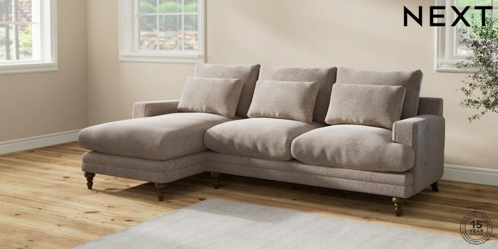 6.12.1 Buy Hutton Deep Relaxed Sit Medium Sofa Chaise - Left Hand Chunky Chenille Light Dove Country Turned - Mid from the Next UK online shop Click here to use our accessible website