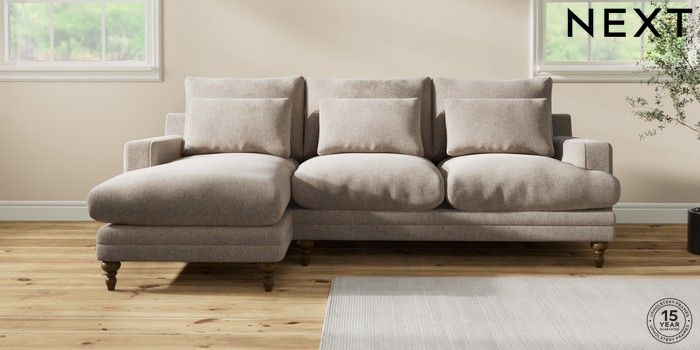 7.0.3 Buy Hutton Deep Relaxed Sit Medium Sofa Chaise - Left Hand Chunky Chenille Light Dove Country Turned - Mid from the Next UK online shop Click here to use our accessible website