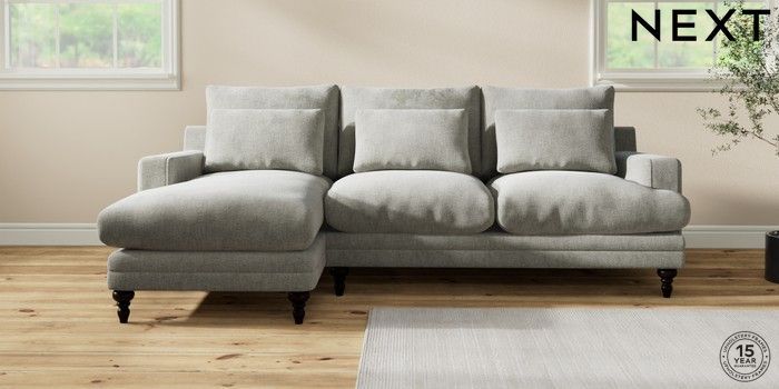 7.0.3 Buy Hutton Deep Relaxed Sit Medium Sofa Chaise - Left Hand Chunky Chenille Light Grey Country Turned - Dark from the Next UK online shop Click here to use our accessible website