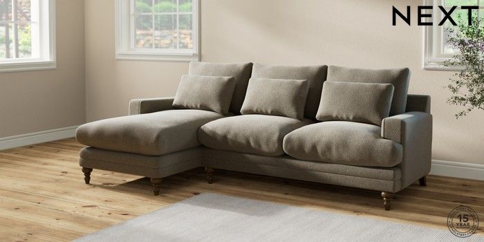 6.12.1 Buy Hutton Deep Relaxed Sit Medium Sofa Chaise - Left Hand Chunky Marl Light Olive Green Country Turned - Mid from the Next UK online shop Click here to use our accessible website
