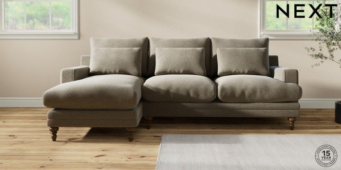 7.0.3 Buy Hutton Deep Relaxed Sit Medium Sofa Chaise - Left Hand Chunky Marl Light Olive Green Country Turned - Mid from the Next UK online shop Click here to use our accessible website