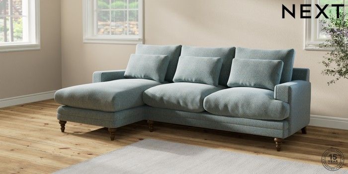 6.12.1 Buy Hutton Deep Relaxed Sit Medium Sofa Chaise - Left Hand Chunky Marl Mid Blue Country Turned - Mid from the Next UK online shop Click here to use our accessible website