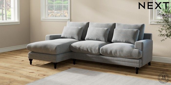 6.12.1 Buy Hutton Deep Relaxed Sit Medium Sofa Chaise - Left Hand Chunky Marl Mid Grey Country Turned - Dark from the Next UK online shop Click here to use our accessible website