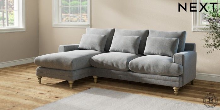 6.12.1 Buy Hutton Deep Relaxed Sit Medium Sofa Chaise - Left Hand Chunky Marl Mid Grey Country Turned - Light from the Next UK online shop Click here to use our accessible website