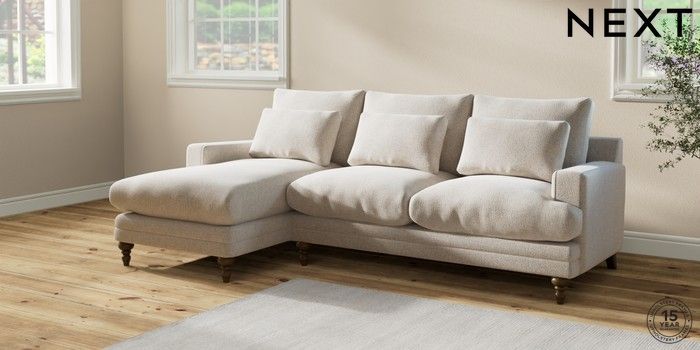 6.12.1 Buy Hutton Deep Relaxed Sit Medium Sofa Chaise - Left Hand Chunky Marl Oyster Country Turned - Mid from the Next UK online shop Click here to use our accessible website