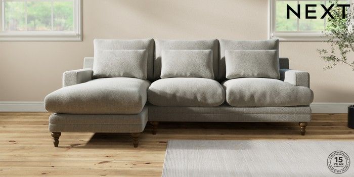 7.0.3 Buy Hutton Deep Relaxed Sit Medium Sofa Chaise - Left Hand Chunky Texture Dove Country Turned - Mid from the Next UK online shop Click here to use our accessible website