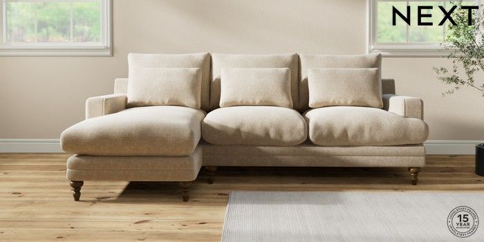 7.0.3 Buy Hutton Deep Relaxed Sit Medium Sofa Chaise - Left Hand Chunky Weave Cream Country Turned - Mid from the Next UK online shop Click here to use our accessible website