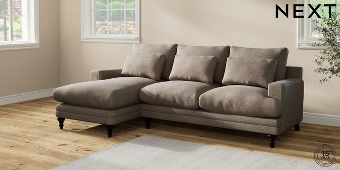 6.12.1 Buy Hutton Deep Relaxed Sit Medium Sofa Chaise - Left Hand Chunky Weave Dark Natural Country Turned - Dark from the Next UK online shop Click here to use our accessible website