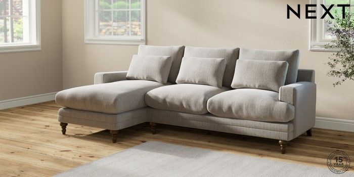 6.12.1 Buy Hutton Deep Relaxed Sit Medium Sofa Chaise - Left Hand Chunky Weave Dove Grey Country Turned - Mid from the Next UK online shop Click here to use our accessible website