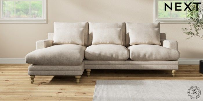 7.0.3 Buy Hutton Deep Relaxed Sit Medium Sofa Chaise - Left Hand Chunky Weave Mid Natural Country Turned - Light from the Next UK online shop Click here to use our accessible website
