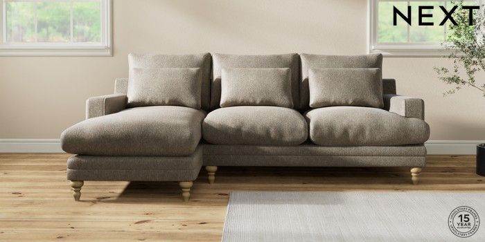 7.0.3 Buy Hutton Deep Relaxed Sit Medium Sofa Chaise - Left Hand Cotswold Chenille Mid Mink Brown Country Turned - Light from the Next UK online shop Click here to use our accessible website