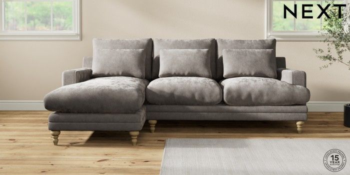 7.0.3 Buy Hutton Deep Relaxed Sit Medium Sofa Chaise - Left Hand Distressed Velour French Grey Country Turned - Light from the Next UK online shop Click here to use our accessible website