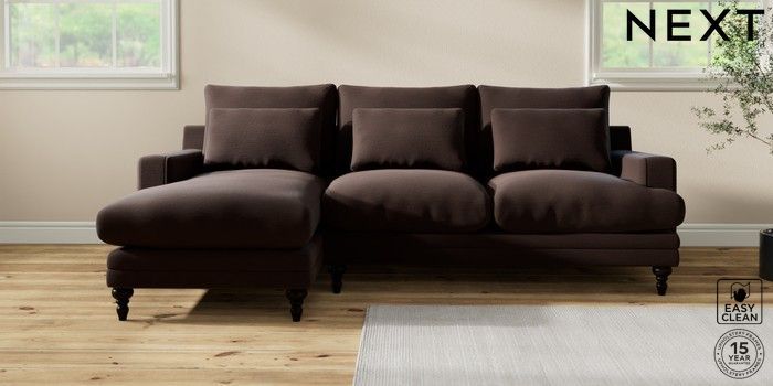 7.0.3 Buy Hutton Deep Relaxed Sit Medium Sofa Chaise - Left Hand Fine Chenille Easy Clean Chocolate Brown Country Turned - Dark from the Next UK online shop Click here to use our accessible website