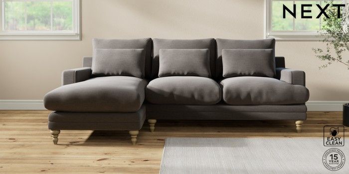 7.0.3 Buy Hutton Deep Relaxed Sit Medium Sofa Chaise - Left Hand Fine Chenille Easy Clean Dark Smoke Grey Country Turned - Light from the Next UK online shop Click here to use our accessible website