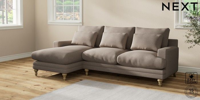 6.12.1 Buy Hutton Deep Relaxed Sit Medium Sofa Chaise - Left Hand Fine Chenille Easy Clean Mid Taupe Brown Country Turned - Light from the Next UK online shop Click here to use our accessible website