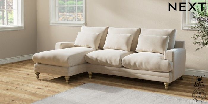 6.12.1 Buy Hutton Deep Relaxed Sit Medium Sofa Chaise - Left Hand Fine Chenille Easy Clean Oyster Country Turned - Light from the Next UK online shop Click here to use our accessible website