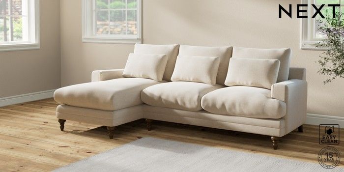 6.12.1 Buy Hutton Deep Relaxed Sit Medium Sofa Chaise - Left Hand Fine Chenille Easy Clean Oyster Country Turned - Mid from the Next UK online shop Click here to use our accessible website