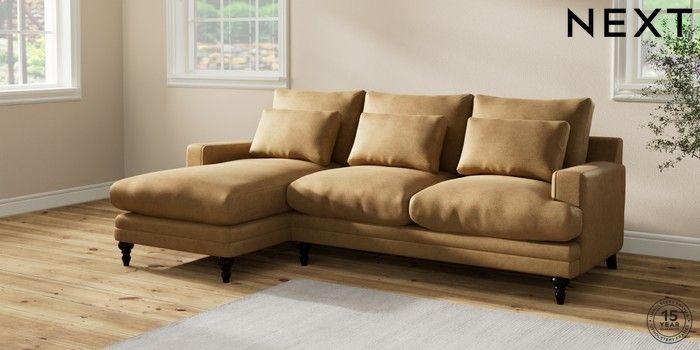 6.12.1 Buy Hutton Deep Relaxed Sit Medium Sofa Chaise - Left Hand Luxe Chenille Honey Yellow Country Turned - Dark from the Next UK online shop Click here to use our accessible website