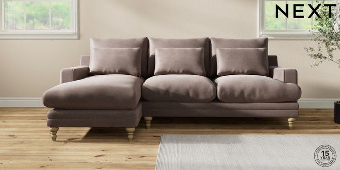 7.0.3 Buy Hutton Deep Relaxed Sit Medium Sofa Chaise - Left Hand Luxe Chenille Mink Brown Country Turned - Light from the Next UK online shop Click here to use our accessible website
