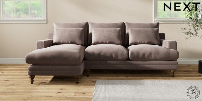 7.0.3 Buy Hutton Deep Relaxed Sit Medium Sofa Chaise - Left Hand Luxe Chenille Mink Brown Country Turned - Mid from the Next UK online shop Click here to use our accessible website