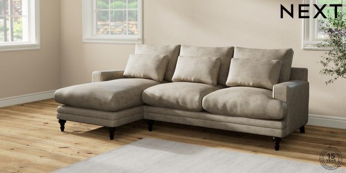 6.12.1 Buy Hutton Deep Relaxed Sit Medium Sofa Chaise - Left Hand Monza Faux Leather Easy Clean Mink Brown Country Turned - Dark from the Next UK online shop Click here to use our accessible website