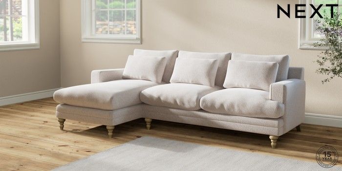 7.2.6 Buy Hutton Deep Relaxed Sit Medium Sofa Chaise - Left Hand Multi Weave Oyster Country Turned - Light from the Next UK online shop Click here to use our accessible website