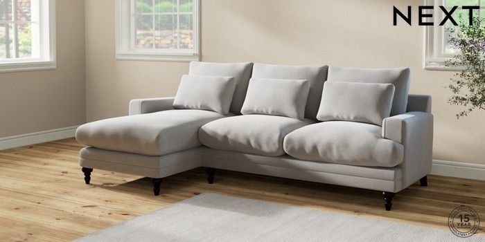 6.12.1 Buy Hutton Deep Relaxed Sit Medium Sofa Chaise - Left Hand Natural Mix Light Grey Country Turned - Dark from the Next UK online shop Click here to use our accessible website
