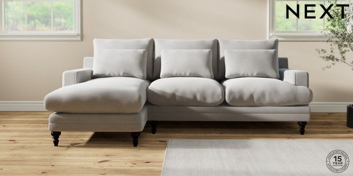 7.0.3 Buy Hutton Deep Relaxed Sit Medium Sofa Chaise - Left Hand Natural Mix Light Grey Country Turned - Dark from the Next UK online shop Click here to use our accessible website