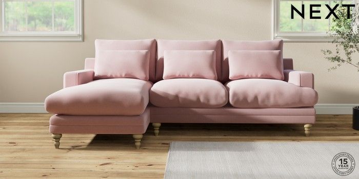 7.0.3 Buy Hutton Deep Relaxed Sit Medium Sofa Chaise - Left Hand Natural Mix Light Rose Pink Country Turned - Light from the Next UK online shop Click here to use our accessible website