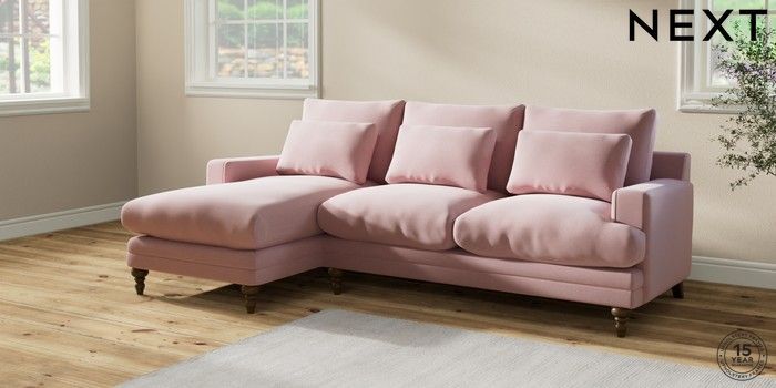 6.12.1 Buy Hutton Deep Relaxed Sit Medium Sofa Chaise - Left Hand Natural Mix Light Rose Pink Country Turned - Mid from the Next UK online shop Click here to use our accessible website