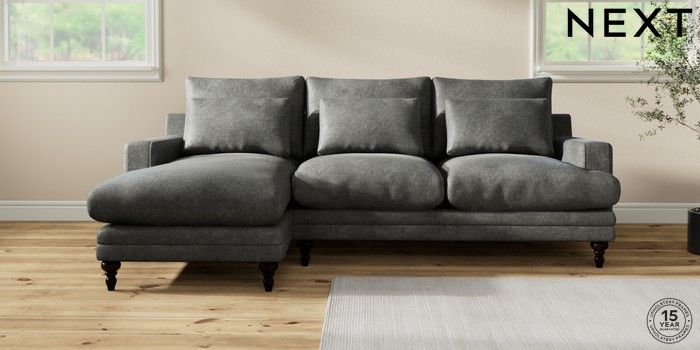 7.0.3 Buy Hutton Deep Relaxed Sit Medium Sofa Chaise - Left Hand Plush Chenille Dark Grey Country Turned - Dark from the Next UK online shop Click here to use our accessible website