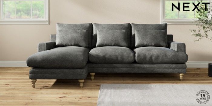 7.0.3 Buy Hutton Deep Relaxed Sit Medium Sofa Chaise - Left Hand Plush Chenille Dark Grey Country Turned - Light from the Next UK online shop Click here to use our accessible website