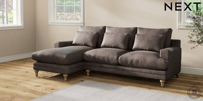 6.12.1 Buy Hutton Deep Relaxed Sit Medium Sofa Chaise - Left Hand Plush Chenille Mink Brown Country Turned - Light from the Next UK online shop Click here to use our accessible website