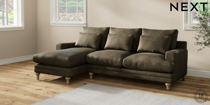 6.12.1 Buy Hutton Deep Relaxed Sit Medium Sofa Chaise - Left Hand Plush Chenille Moss Green Country Turned - Light from the Next UK online shop Click here to use our accessible website