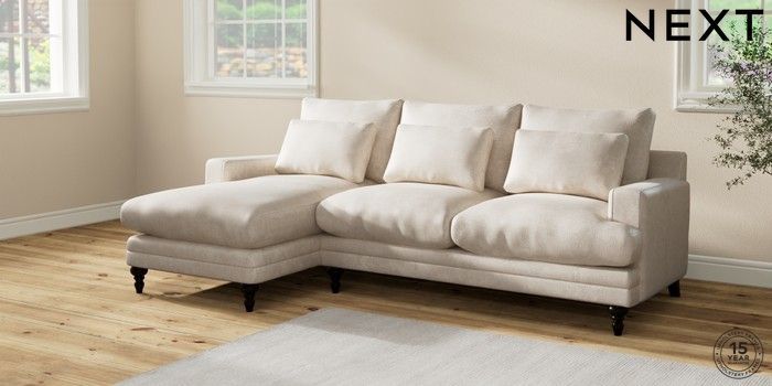 6.12.1 Buy Hutton Deep Relaxed Sit Medium Sofa Chaise - Left Hand Plush Chenille Oyster Country Turned - Dark from the Next UK online shop Click here to use our accessible website