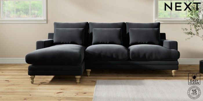 7.0.3 Buy Hutton Deep Relaxed Sit Medium Sofa Chaise - Left Hand Plush Velvet Easy Clean Charcoal Grey Country Turned - Light from the Next UK online shop Click here to use our accessible website