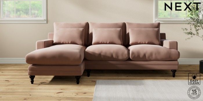 7.0.3 Buy Hutton Deep Relaxed Sit Medium Sofa Chaise - Left Hand Plush Velvet Easy Clean Mid Natural Country Turned - Dark from the Next UK online shop Click here to use our accessible website