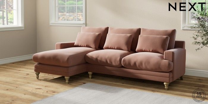 6.12.1 Buy Hutton Deep Relaxed Sit Medium Sofa Chaise - Left Hand Relaxed Linen Look Light Rust Brown Country Turned - Light from the Next UK online shop Click here to use our accessible website