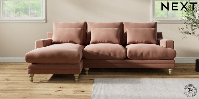 7.0.3 Buy Hutton Deep Relaxed Sit Medium Sofa Chaise - Left Hand Relaxed Linen Look Light Rust Brown Country Turned - Light from the Next UK online shop Click here to use our accessible website