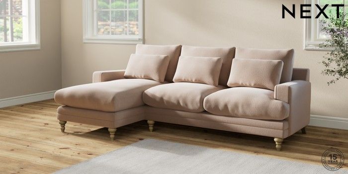 6.12.1 Buy Hutton Deep Relaxed Sit Medium Sofa Chaise - Left Hand Relaxed Linen Look Mid Natural Country Turned - Light from the Next UK online shop Click here to use our accessible website