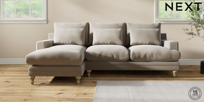 7.0.3 Buy Hutton Deep Relaxed Sit Medium Sofa Chaise - Left Hand Ripple Chenille Light Natural Country Turned - Light from the Next UK online shop Click here to use our accessible website