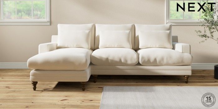 7.0.3 Buy Hutton Deep Relaxed Sit Medium Sofa Chaise - Left Hand Ripple Chenille Oyster Country Turned - Mid from the Next UK online shop Click here to use our accessible website