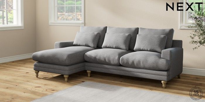 6.12.1 Buy Hutton Deep Relaxed Sit Medium Sofa Chaise - Left Hand Studio Chenille Mid Grey Country Turned - Light from the Next UK online shop Click here to use our accessible website