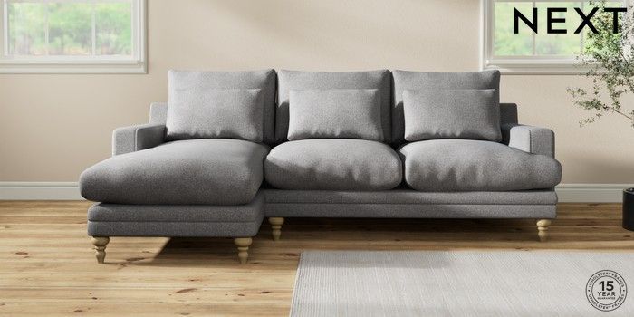 7.0.3 Buy Hutton Deep Relaxed Sit Medium Sofa Chaise - Left Hand Studio Chenille Mid Grey Country Turned - Light from the Next UK online shop Click here to use our accessible website