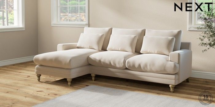 6.12.1 Buy Hutton Deep Relaxed Sit Medium Sofa Chaise - Left Hand Studio Chenille Oyster Country Turned - Light from the Next UK online shop Click here to use our accessible website