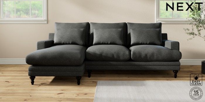 7.0.3 Buy Hutton Deep Relaxed Sit Medium Sofa Chaise - Left Hand Tweedy Blend Easy Clean Charcoal Grey Country Turned - Dark from the Next UK online shop Click here to use our accessible website