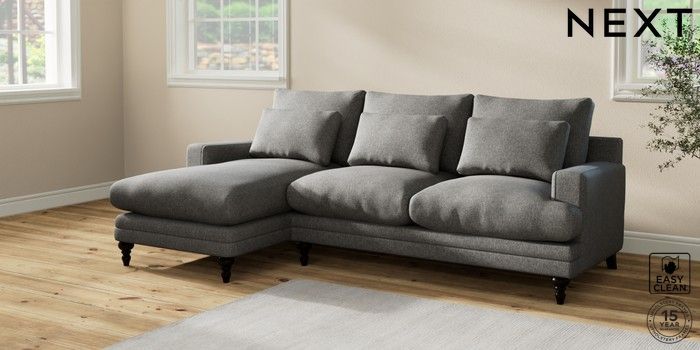 6.12.1 Buy Hutton Deep Relaxed Sit Medium Sofa Chaise - Left Hand Tweedy Blend Easy Clean Dark Grey Country Turned - Dark from the Next UK online shop Click here to use our accessible website